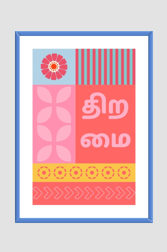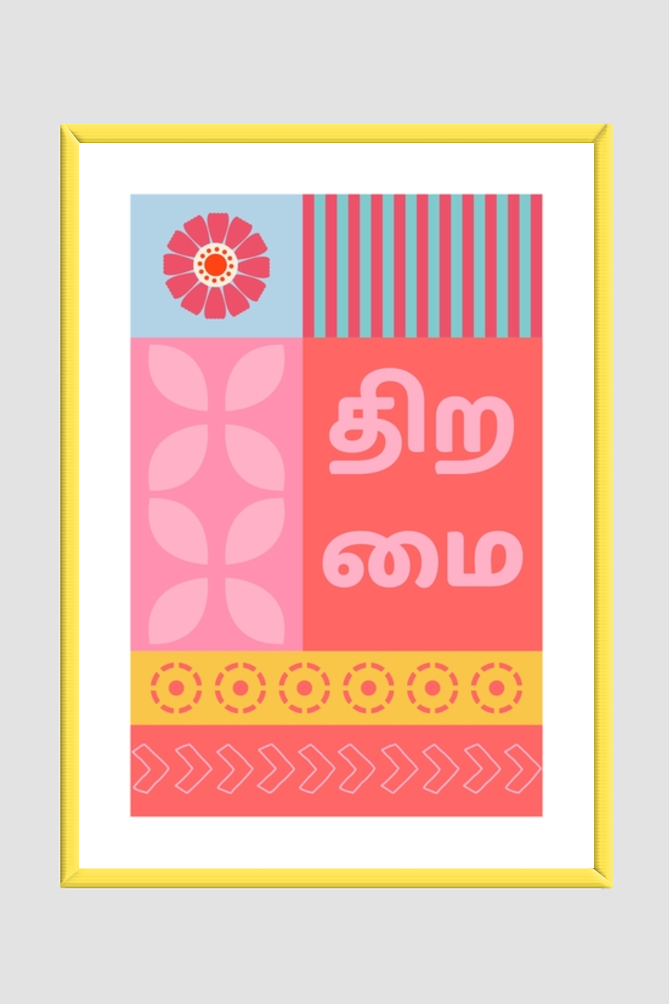 Dive into the power of words with Kalanjiyam, a striking collection of posters featuring iconic Tamil words. Each design celebrates the depth, beauty, and meaning of the Tamil language, paired with bold and modern visuals. These posters are perfect for adding a touch of culture, inspiration, and positivity to your walls. Let the timeless charm of Tamil words speak to your heart and uplift your space like never before.